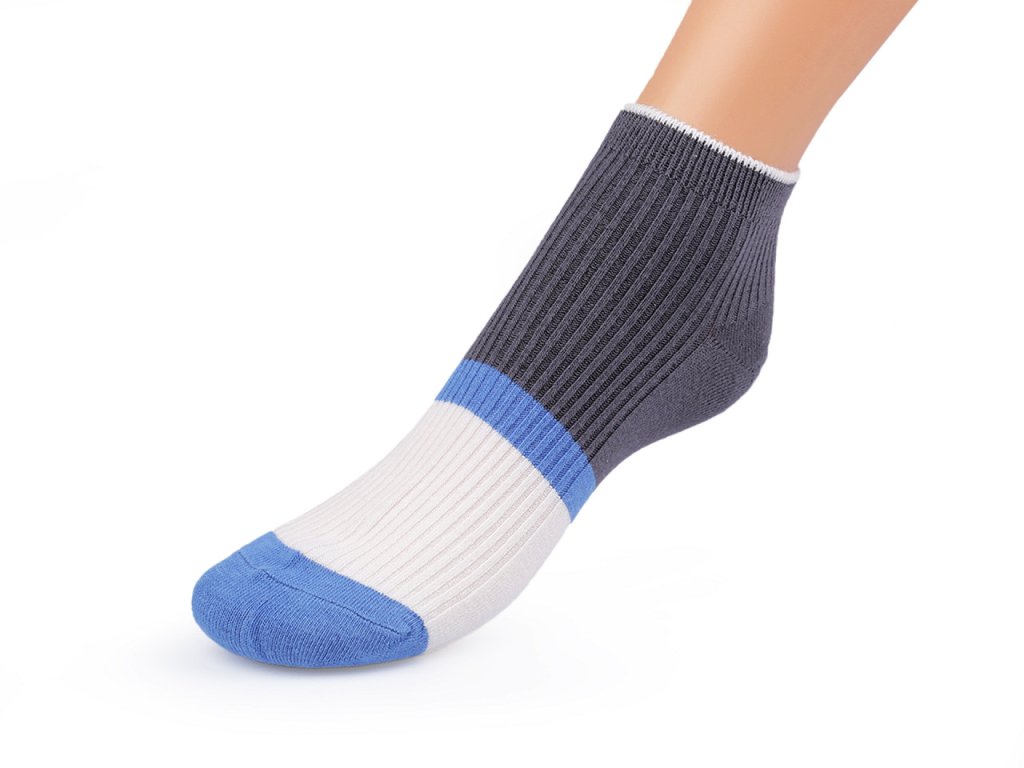 Bavlněné kotníkové ponožky s řádkováním na nártu a okolo kotníku se příjemně nosí. Jsou pružné a prodyšné. Díky plochému švu ve špičce netlačí. Využijete je denně na běžné nošení nebo do sportovních tenisek. Jsou vhodné pro pány i chlapce.