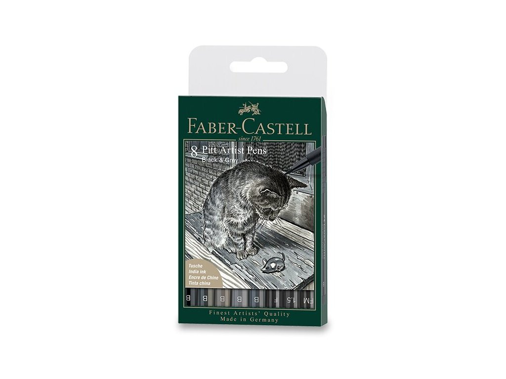 Popisovač Faber-Castell Pitt Artist Pen Black&Grey - sada 8 ks, různé hroty, černý a šedý