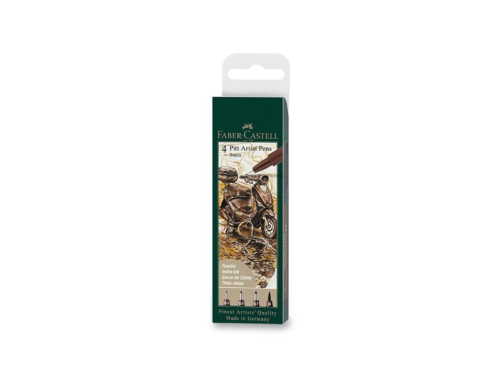 Popisovač Faber-Castell Pitt Artist Pen - sada 4 ks, S, F, M, B, sepia