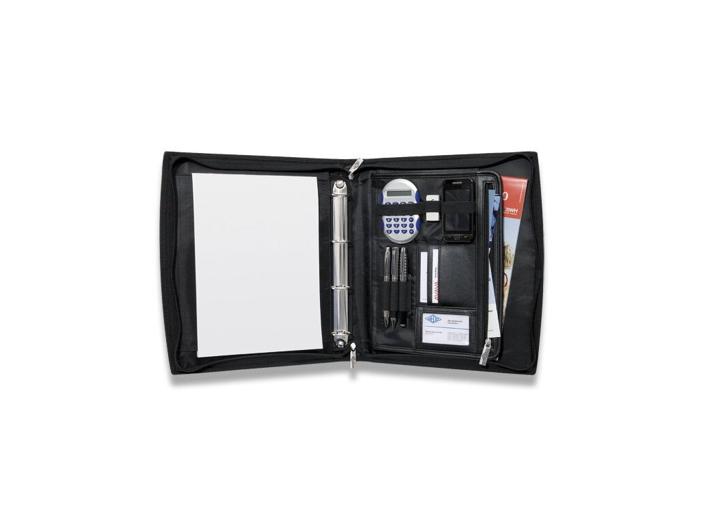 Uzaviratelné portfolio Elegance formátu A4 se zipem a rukojetí má 4kroužkovou mechaniku a bohaté vnitřní členění. Díky kapse na psací blok otevřené nahoře i dole je tato multifunkční spisovka vhodná i pro leváky.