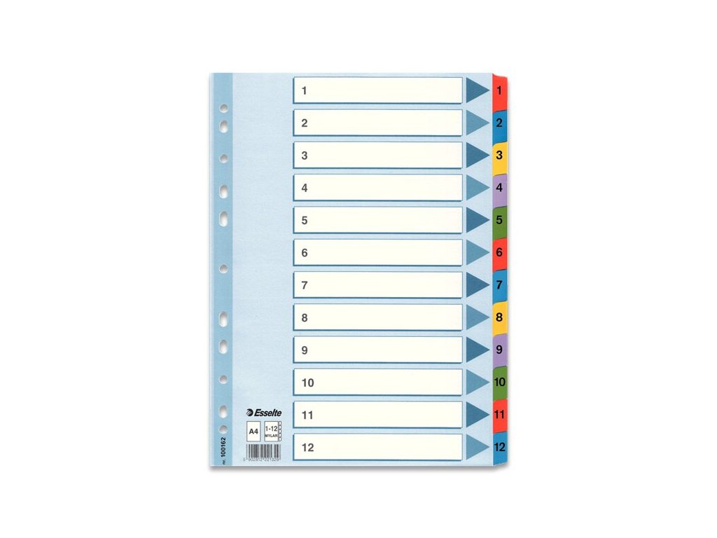 * 12 barevných dělicích listů se štítky 1-12 pro rychlou orientaci v obsahu