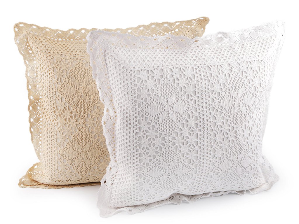 Povlaky na polštáře s paličkovanou krajkou jsou ideální pro vytvoření útulné atmosféry. Dodají vintage nebo boho atmosféru každému interiéru. Na zadní straně se zapínají na zip. Na přední straně polštáře je krajka, zadní strana je jednobarevná. Krajka přesahuje přes okraj textilního potahu.