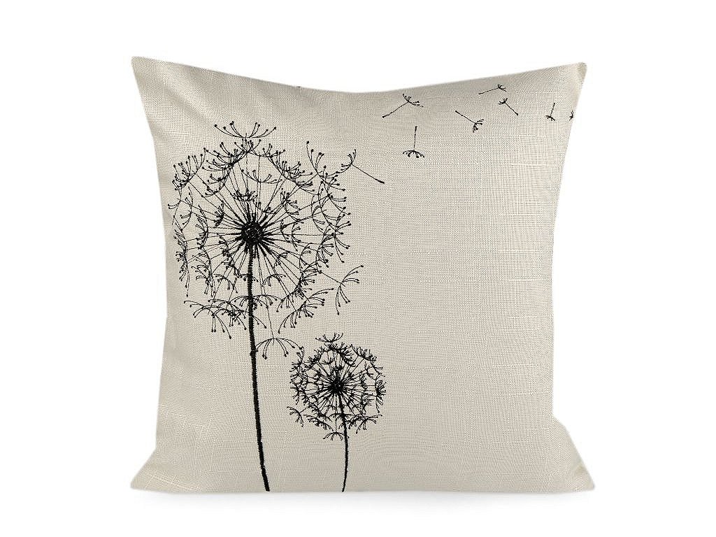 Povlak na polštář zdobí výšivka s pampeliškami, která je jednostranná. Zapíná se na zip.