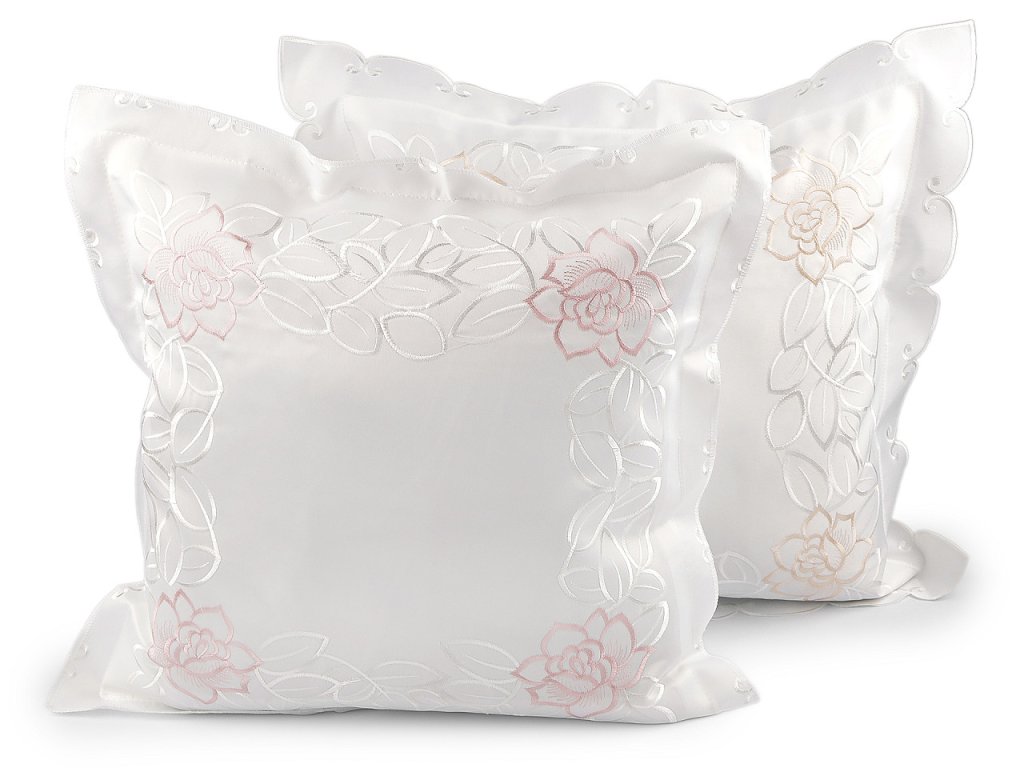Povlak na polštář zdobí jemná elegantní výšivka květů. Můžete jej použít k vytvoření příjemné atmosféry na pohovce, křesle nebo posteli. Je vhodný i ke svatebnímu aranžování.