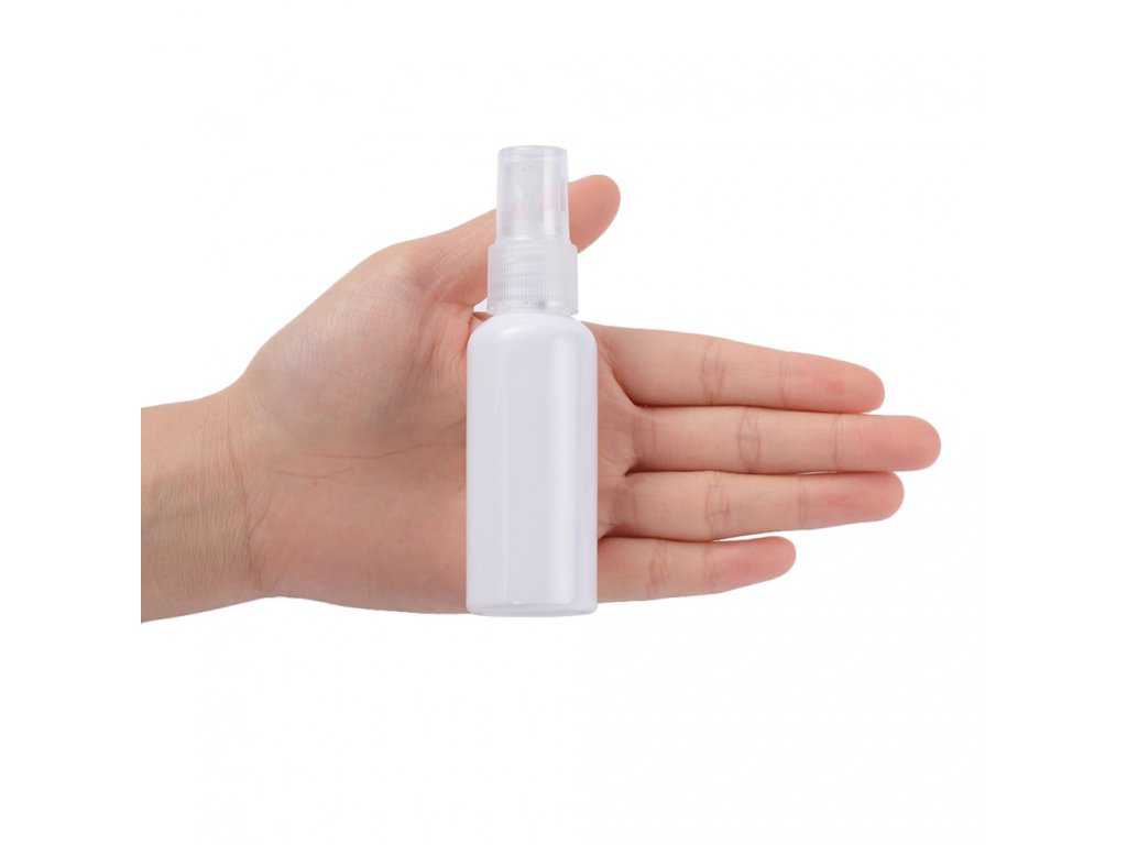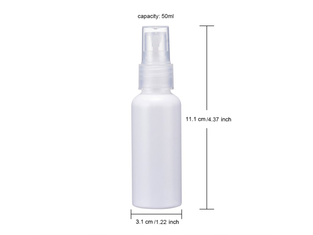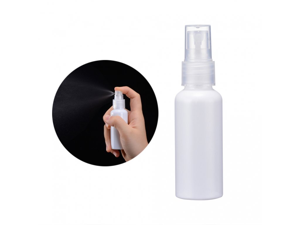 Prázdná plastová lahvička se sprejem, objem 50 ml.