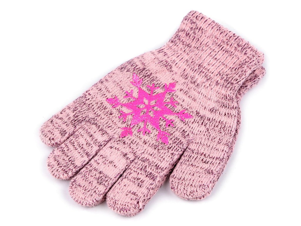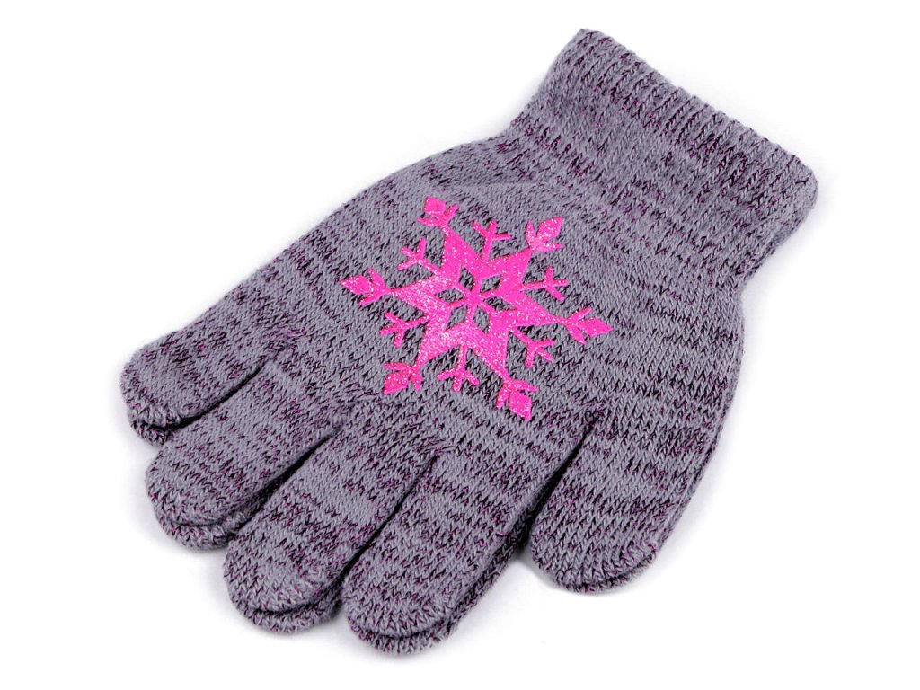 Dívčí prstové rukavice z pružné melírované pleteniny se ruce skvěle přizpůsobí. Jsou ozdobené gumovým potiskem třpytivé vločky. Díky pružnému lemu kolem zápěstí pevně drží - nesklouzávají. Jsou ideálním doplňkem do sychravého podzimního a zimního počasí.