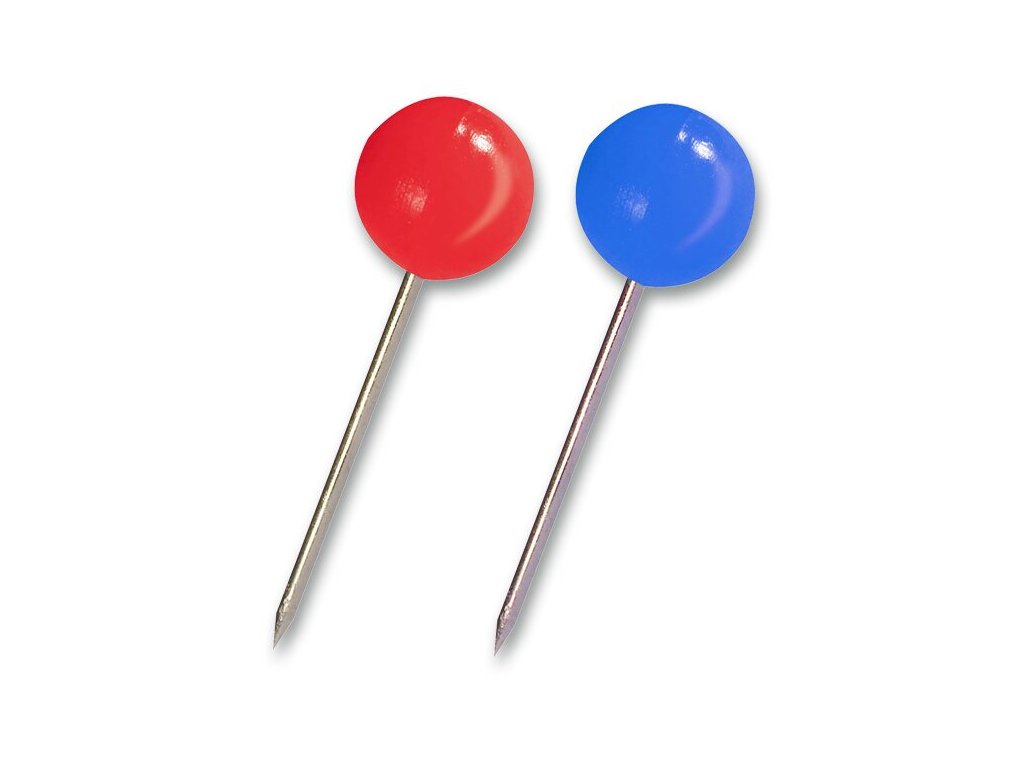 Tabulové špendlíky, ocelový hrot. Plastová hlavička průměr 5 mm, 100 ks. Mix barev.