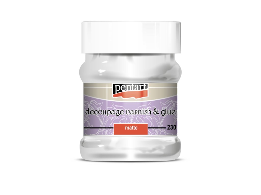 Lepidlo a lak na decoupage s matným efektem na vodní bázi s gelovou konzistencí.