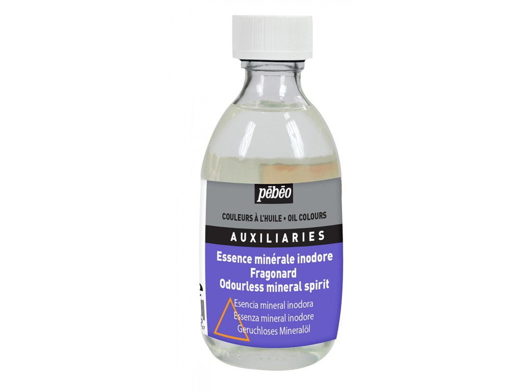 Minerální líh Pébeo Fragonard je bez zápachu a jedná se o silné rozpouštědlo užitečné pro čištění malířského náčiní, které již zaschlo.
