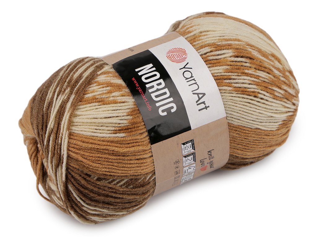 Pletací příze Nordic vás okouzlí svým jedinečným melírovaným designem, který kombinuje různé odstíny barev do harmonického celku. Melírovaný efekt je samovzorovací a při háčkování či pletení vytváří zajímavé různobarevné pruhy.