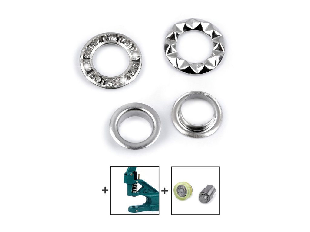 Kovové průchodky mají poutavý design - zdobí je třpytivé broušené kamínky. Jsou nerezivějící. Využijete je na mikiny, šaty, bundy, vesty i tašky.