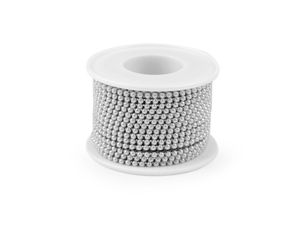 Luxusní bižuterní řetízkovou bortu zdobí malé perlové korálky, které jsou vsazené do kovových lůžek.