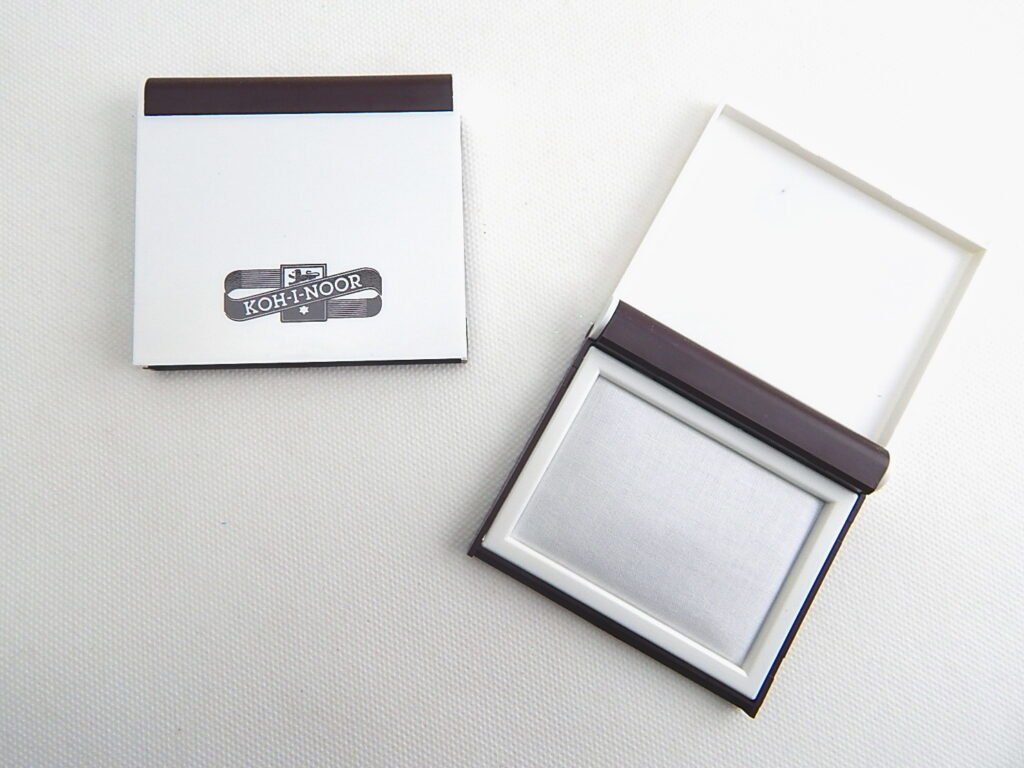 Malá nenapuštěná razítková poduška vyrobená z polystyrenu v hnědo-bílé kombinaci. Hnědý spodek a bílé víko. Maximální rozměr razítka 71 x 50 mm. Po napuštění razítkovací barvou je určena k namáčení razítek za účelem zhotovení jejich otisku. Určena pro kancelář a hobby.