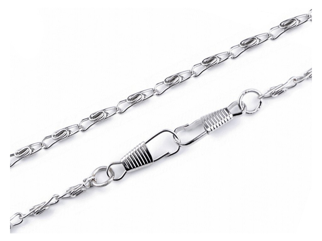 Řetízek je tvořený ze zajímavě propracovaných oček. Na obou koncích jsou připevněné jednoduché karabinky.