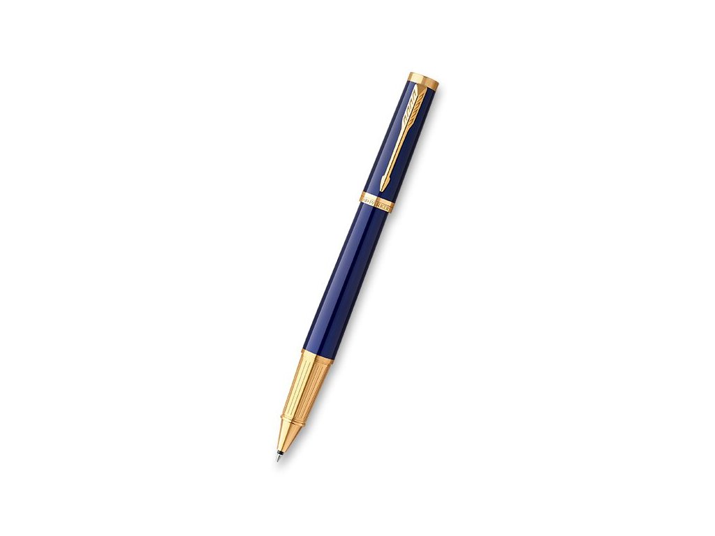 Roller Parker Ingenuity Dark Blue GT má mosazné tělo a víčko pokryté modrým lakem, úchop je zdobený pravidelnými rytinami. V kombinaci s doplňky pozlacenými pomocí techniky PVD.