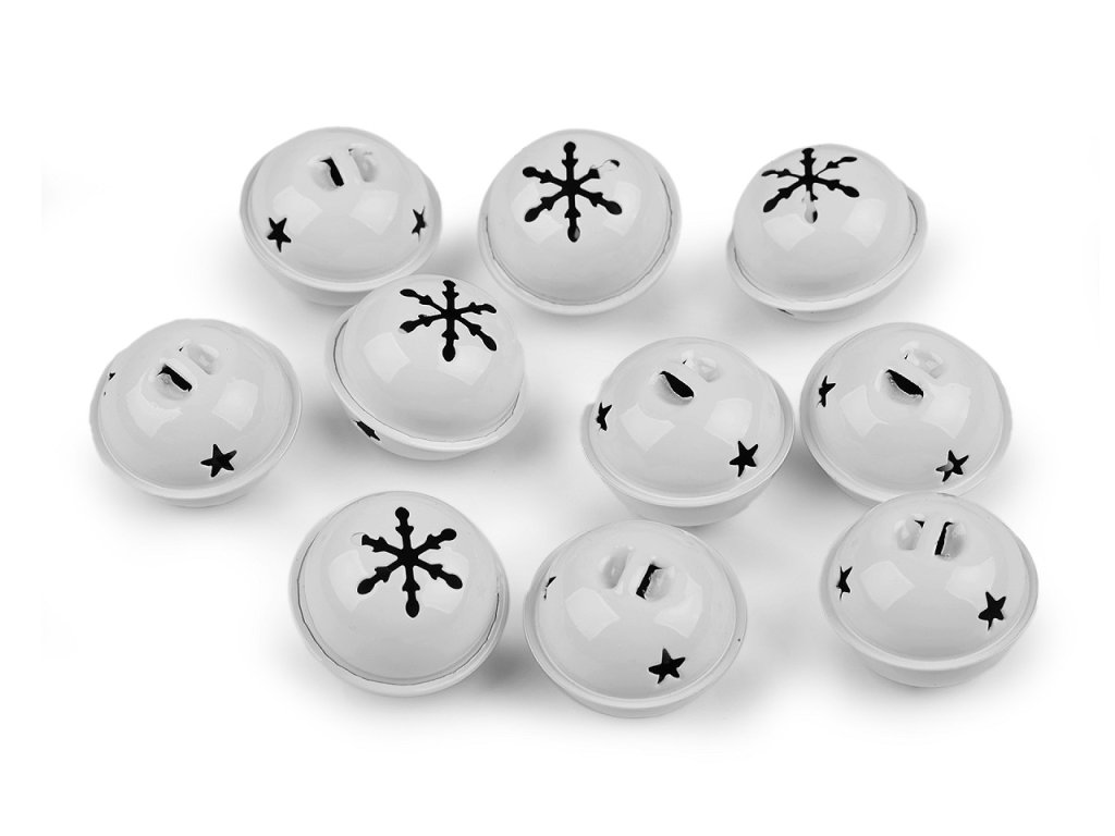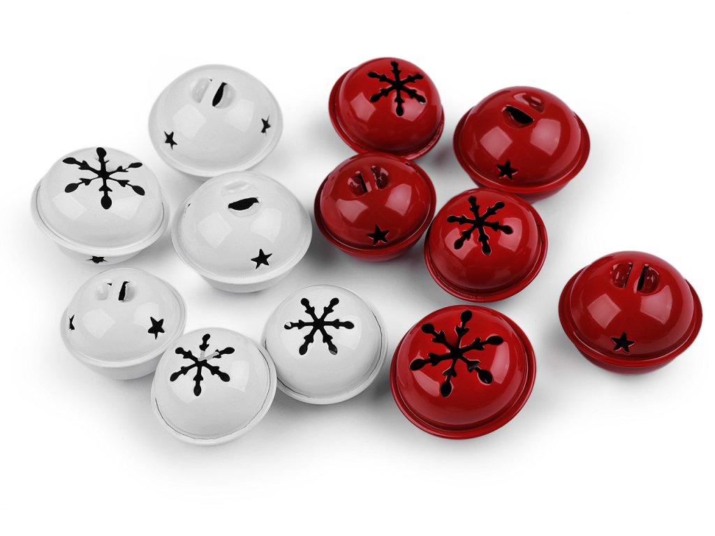 Sada kovových rolniček bude působivou dekorací na vánočním stromečku, věnci, dveřích apod. Jemně zvoní, nahoře mají otvor na provlečení šňůrky nebo háčku. Jsou zabalené v uzavíratelném sáčku.