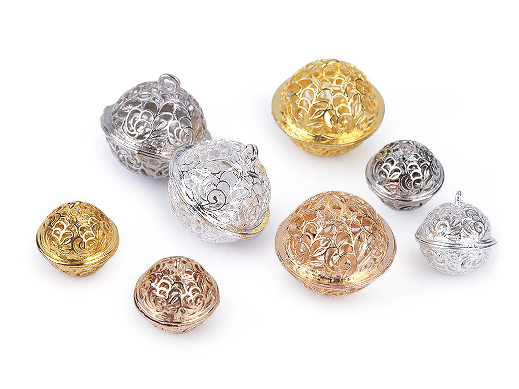 Kovové rolničky mají efektní filigránové výřezy. Jejich zvonění je hlasité a jasné. Rolničky využijete na výrobu různých ozdob a dekorací.