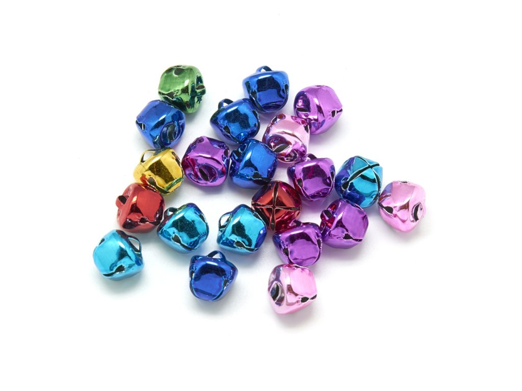 Drobné kovové rolničky standardní kvality určeny k dekoračním účelům.