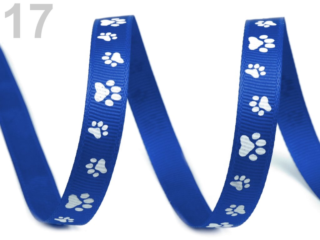 Stuha s potiskem tlapek o šíři 10 mm. Můžete ji využít ke zdobení obojků, oblečků pro zvířata, k lemování dalších textilií, k zavěšení na krk na mobily či klíče. Rypsové stuhy se dají využít mnoha způsoby, proto jsou oblíbené v oděvním průmyslu. K dispozici je více barevných variant.