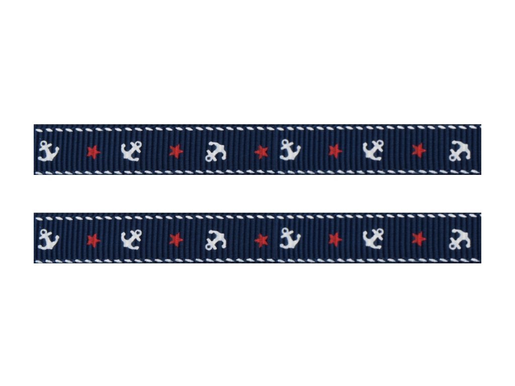 Rypsovou stuhu zdobí námořnický potisk s kotvami. Stuha je pevná s typickým žebrováním. Potisk je jednostranný.