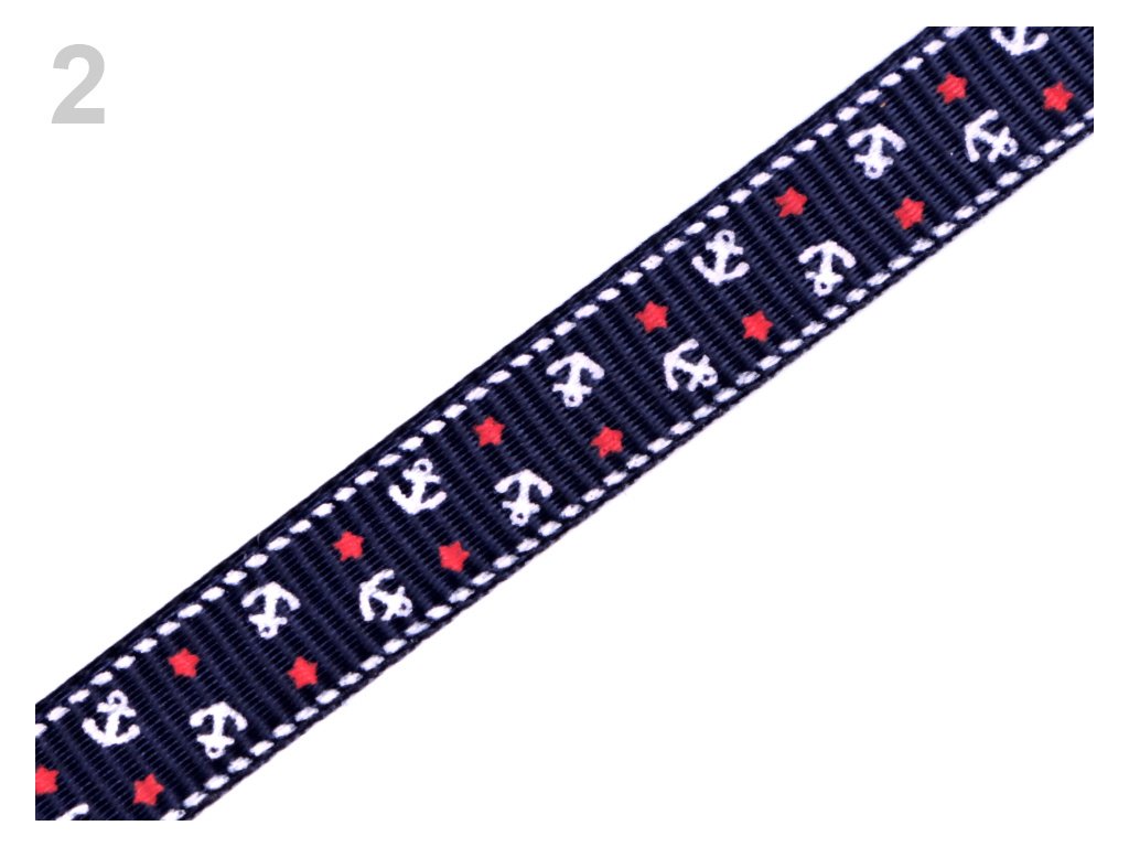Rypsovou stuhu zdobí námořnický potisk s kotvami. Stuha je pevná s typickým žebrováním. Potisk je jednostranný.