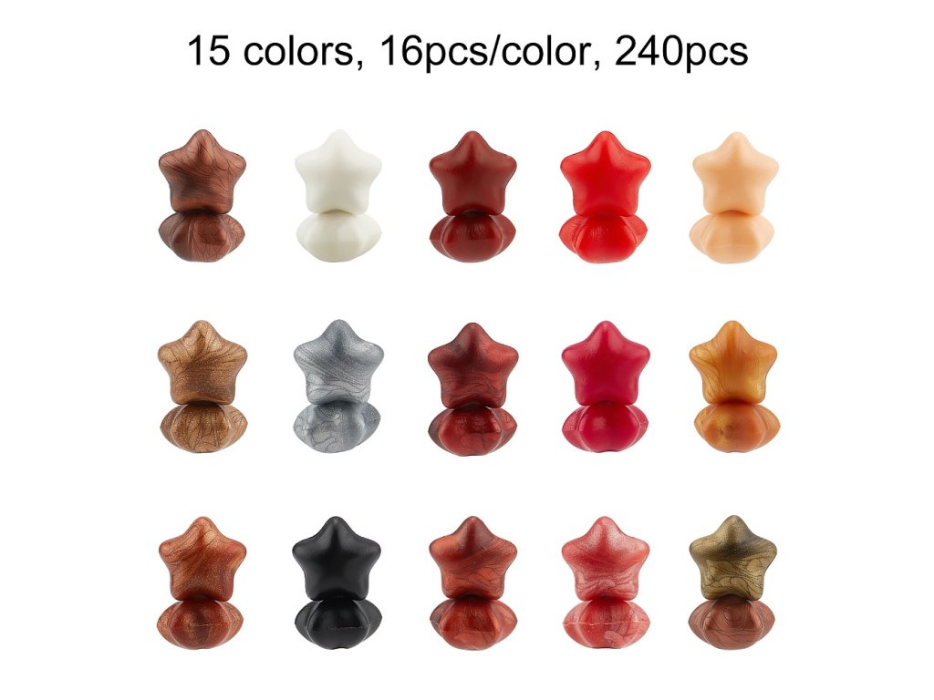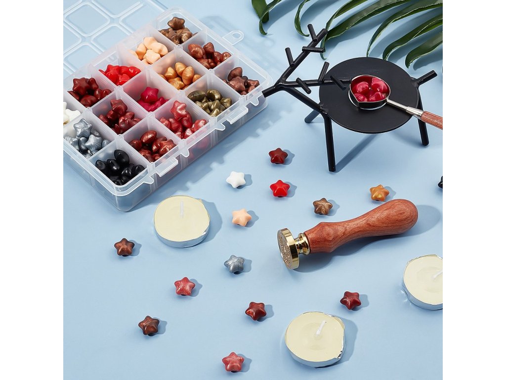 - pečetní vosk ve tvaru hvězdiček - 15 barev, 16 ks/1 barva - 240 ks celkem