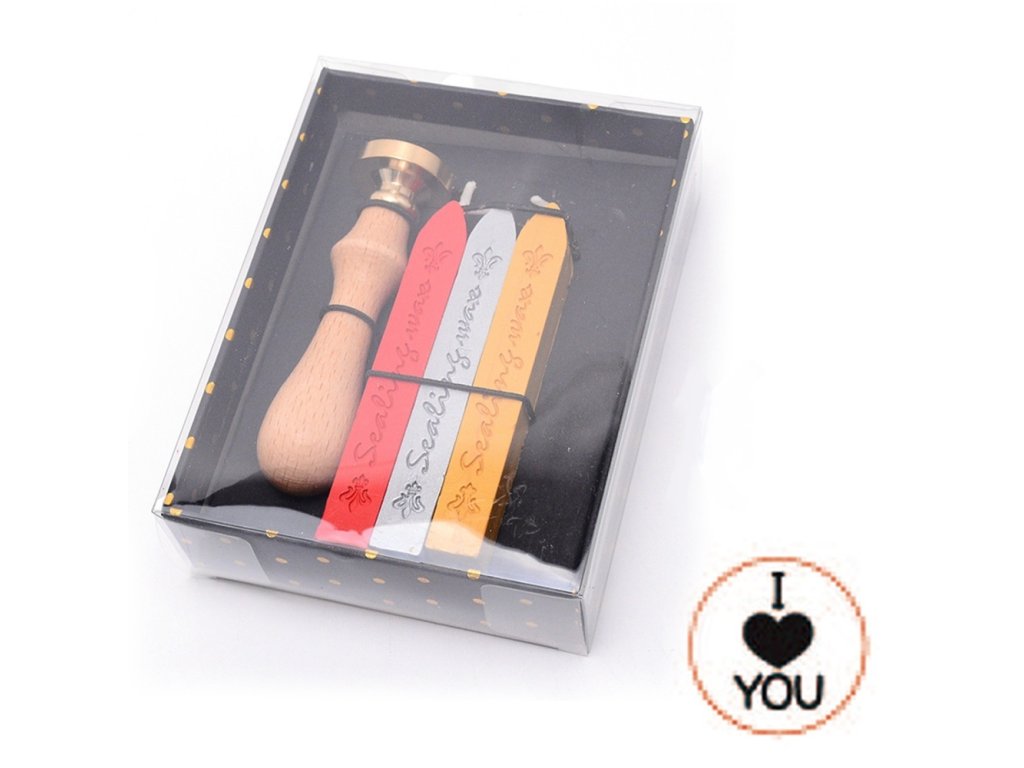 Pečetní sada - vosky a pečetidlo I LOVE YOU