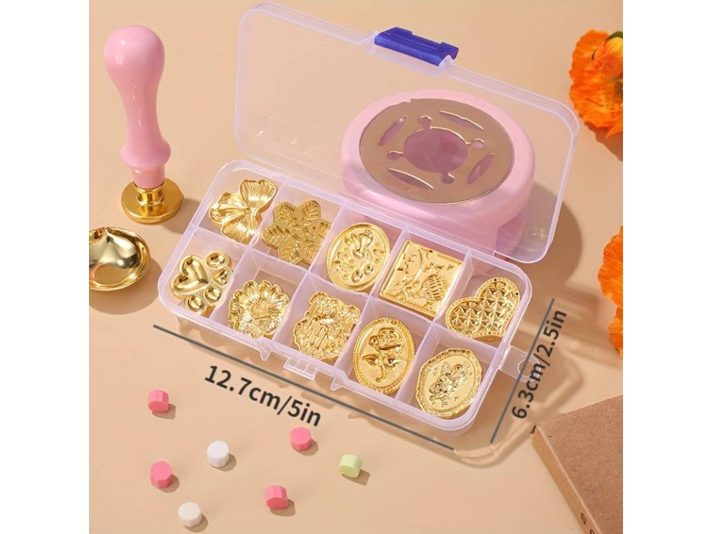 Sada kovových hlavic na pečetidla - pozvánky, přáníčka a oznámení, tam všude pečeť využijete. Díky pečetím získáte milý a elegantní doplněk i pro různé produkty. Můžete si ozdobit papírové visačky, kterými své výrobky označíte.