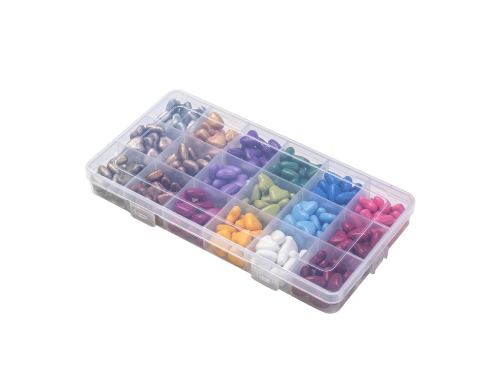 V sadě naleznete 18 různých barev voskových srdíček, které lze společně mixovat a vytvářet tak různobarevné efekty a přechody. Od každé barvy v balení naleznete 18 ks.