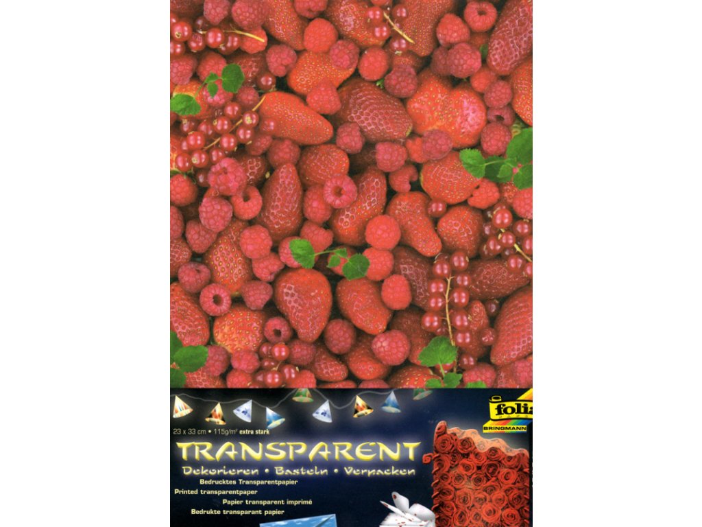 Průhledný papír s potiskem- Maliny, jahody, rybíz - 5 ks