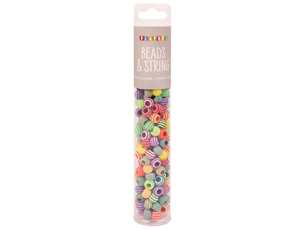 Barevné plastové korálky v tubě + šňůrka, 180 ks, pastelové pruhované