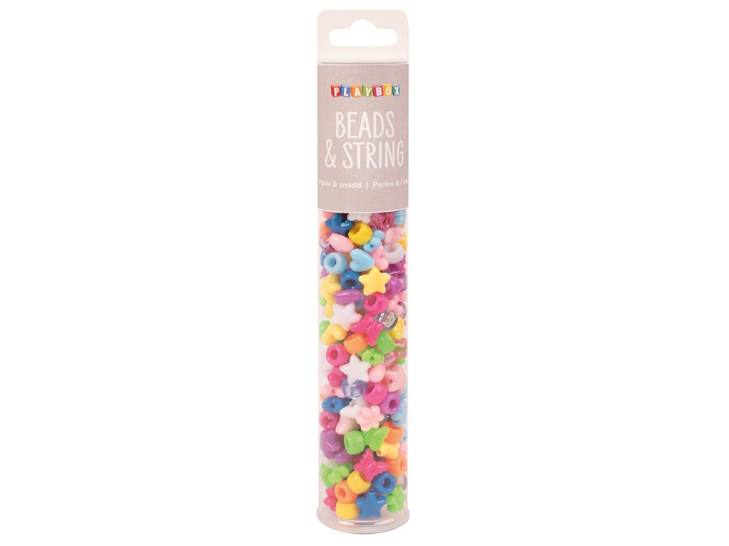 Barevné plastové korálky v tubě + šňůrka, 200 ks, mix různých tvarů