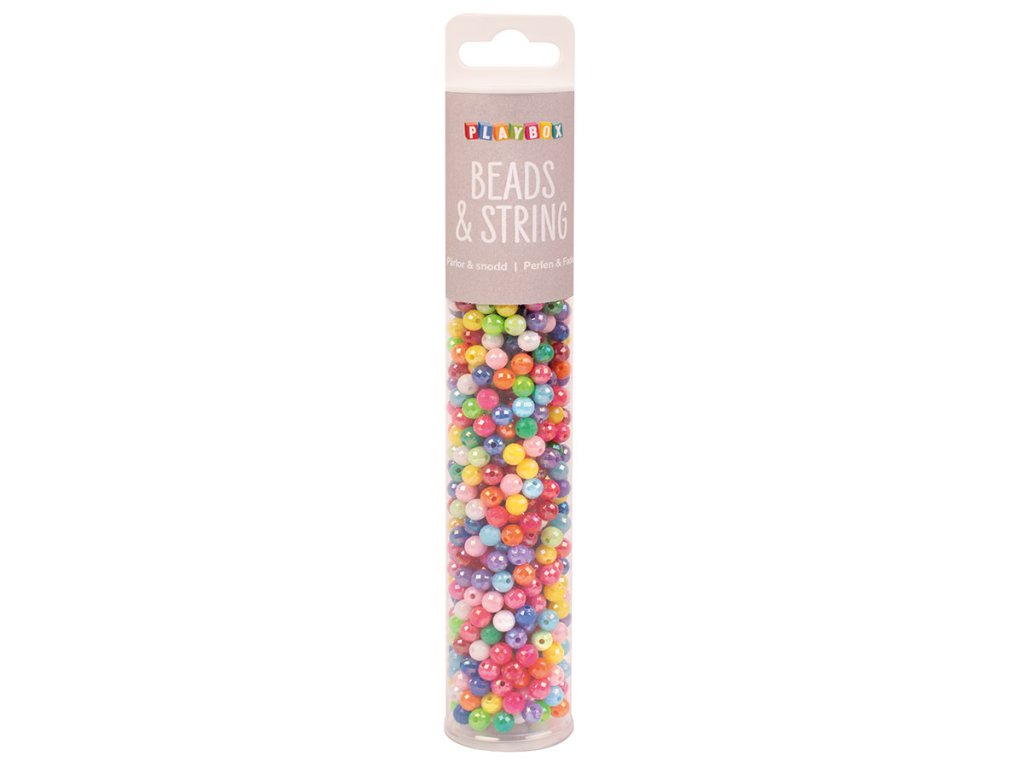 Barevné plastové korálky v tubě + šňůrka, 650 ks, barevné perly