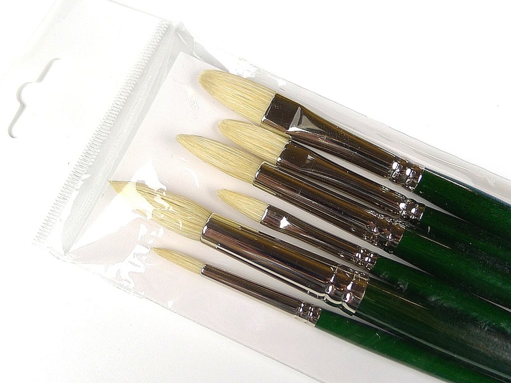 Přírodní štětce různých velikostí. Použití: akryl, olej