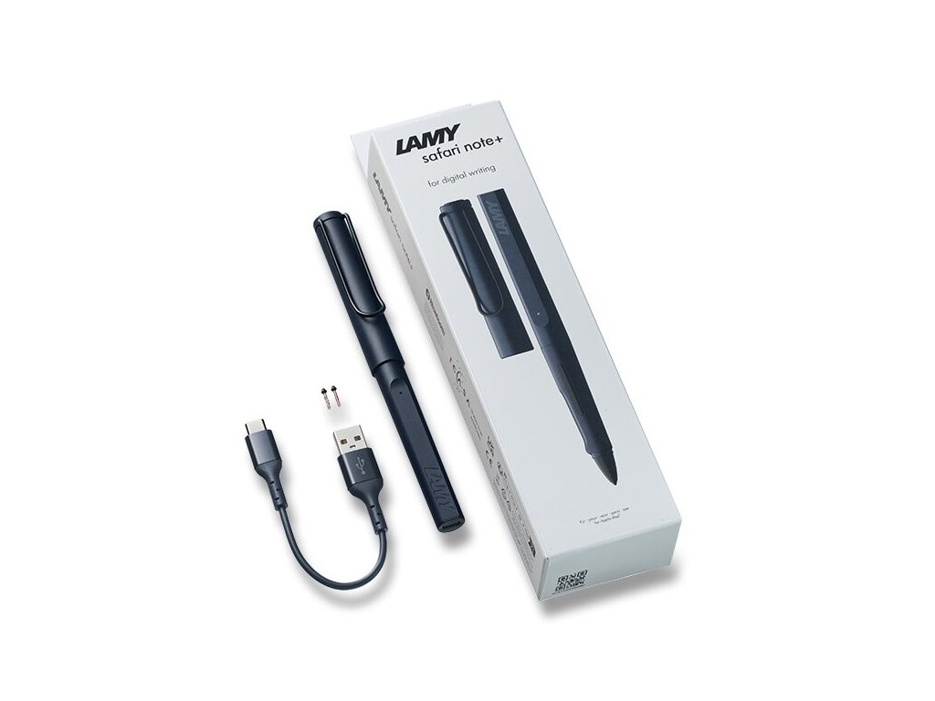 Stylus pen Lamy Safari Note+ v provedení Steel Black má tělo z matného plastu, nasazovací víčko a odpružený kovový klip poražený černou barvou. Úchopová zóna je ergonomicky tvarovaná v černé barvě. Pero je vybaveno modulem AES pro Apple iPad, což umožňuje přesné a citllivé ovládání tabletu. Díky dobíjecí baterii a USB-C konektoru je dobíjení rychlé. Součástí je také vyměnitelný hrot HTPR medium, který je navržený pro hladké povrchy, což zaručuje plynulý pohyb po obrazovce. Stylus pero skvěle kombinuje funkčnost, pohodlí a elegantní design.