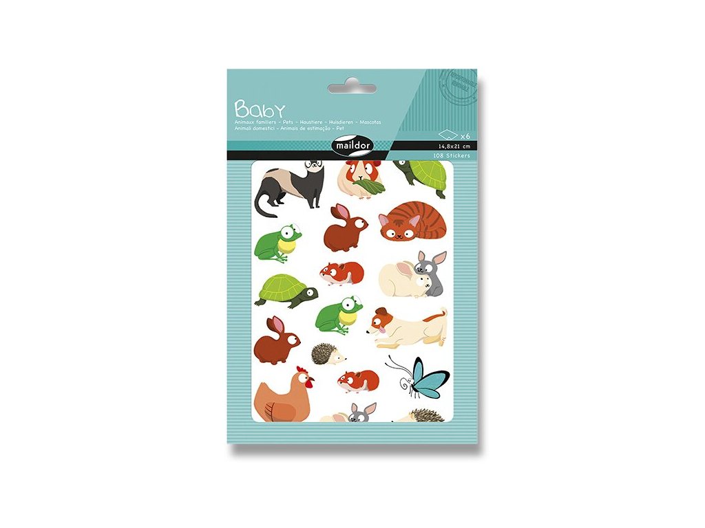 Samolepky Maildor Baby velké velikosti pro snadnou manipulaci s dětskými motivy domácích zvířátek. Balení obsahuje 6 listů, 2 motivy po 3 ks,Vhodné pro děti již od 2 let.