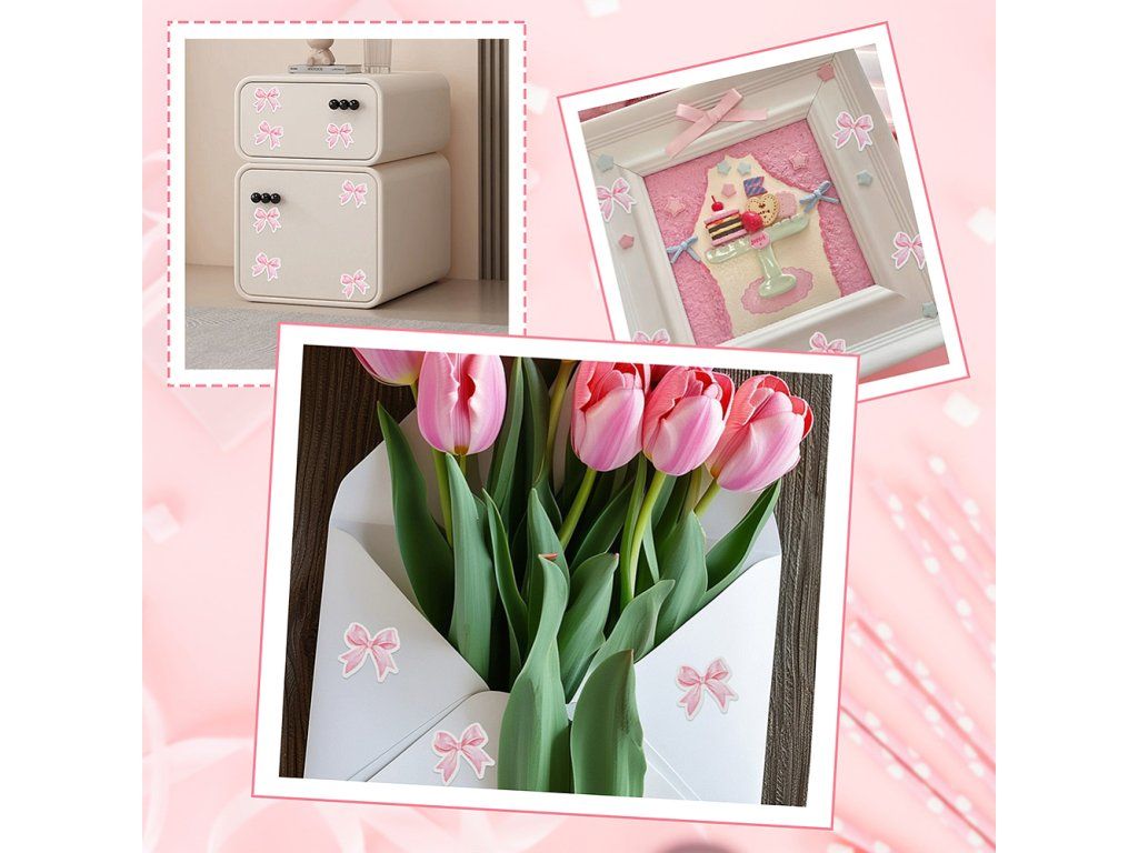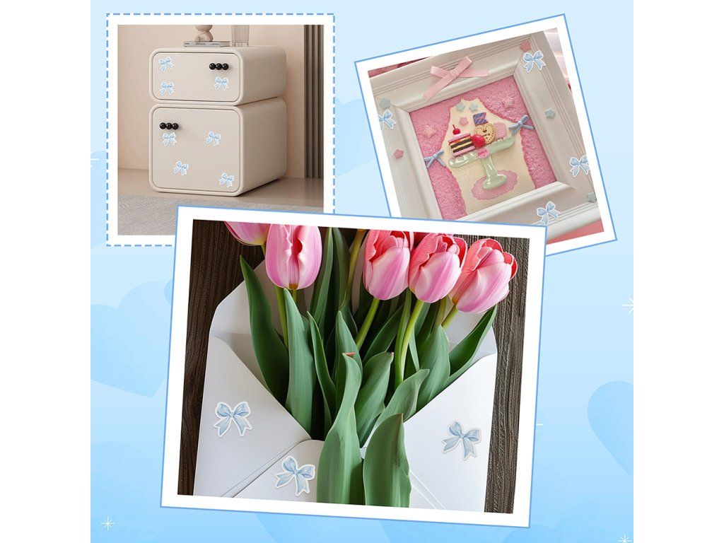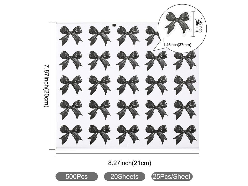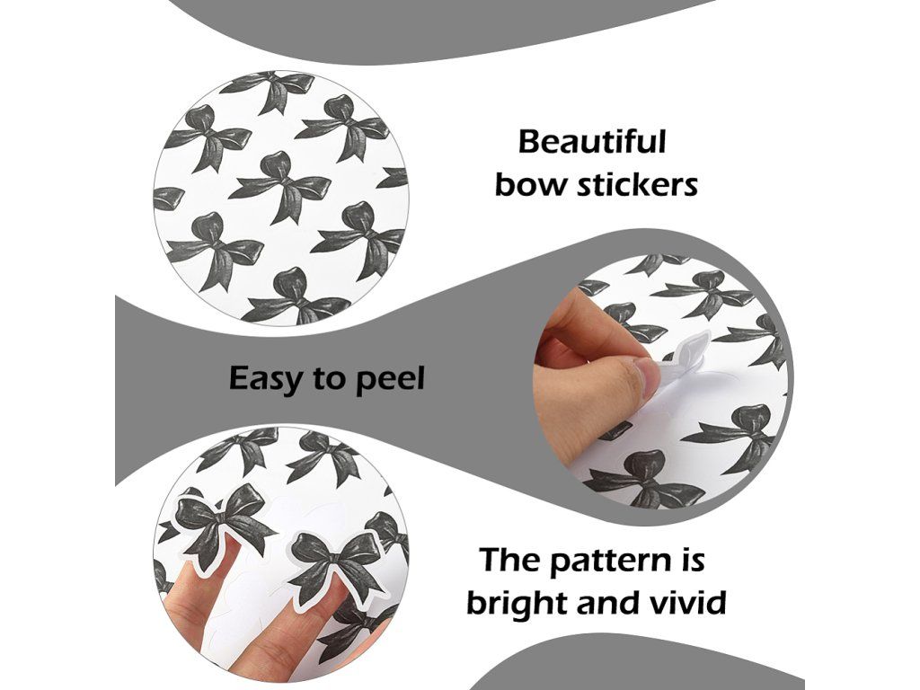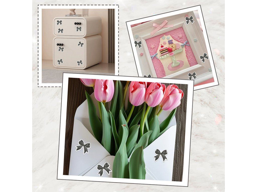 Tyto stylové samolepky s motivem mašliček dodají vašim věcem jedinečný a hravý vzhled. Jsou vyrobeny z odolného PP materiálu a díky kvalitnímu samolepicímu podkladu je snadno nalepíte na skateboard, helmu, mobil, kufr či lednici, nebo je využijete k dekorování scrapbookových stránek a deníků.