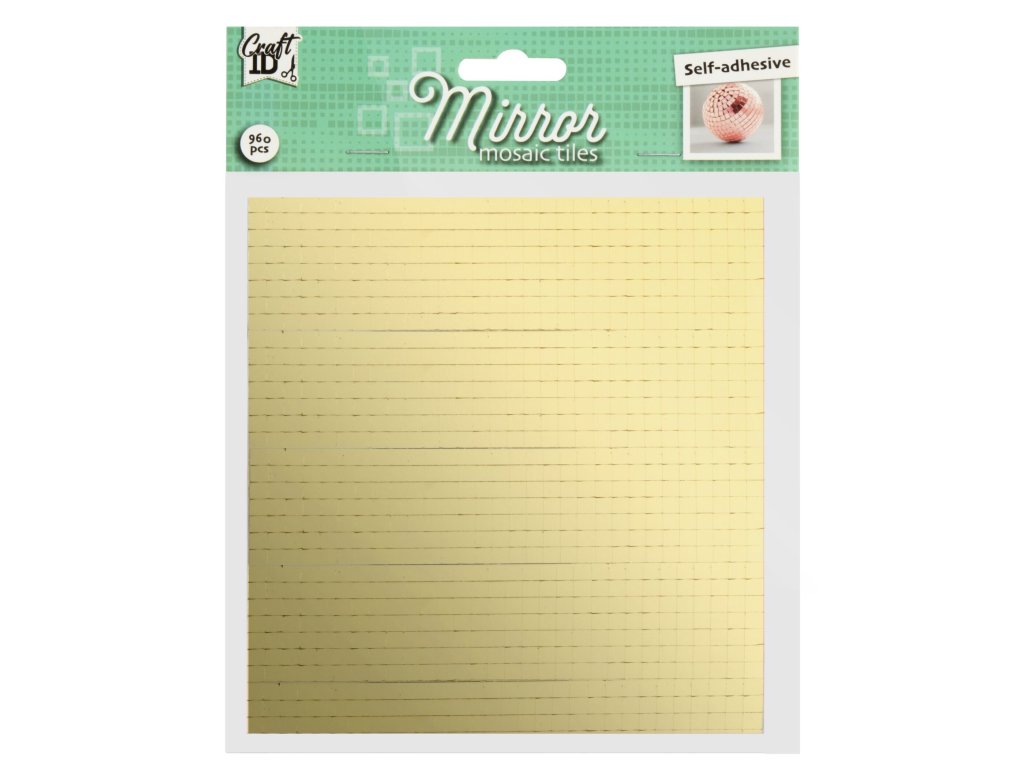 Jedná se o malé, zlaté zrcadlové dílky, které jsou opatřeny samolepicí vrstvou. Díky tomu je jejich aplikace velmi snadná a zvládne ji každý. Tyto dílky můžete libovolně sestavovat a vytvářet tak jedinečné obrazce, ornamenty nebo celé plochy.