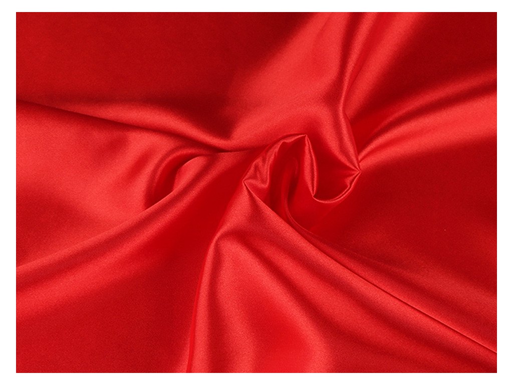 Jednobarevný satén [je tkanina v atlasové vazbě, pro kterou je charakteristický vysoký lesk lícové strany a matná rubová strana. Působí luxusně a elegantně. Materiál je velice splývavý, hladký, na omak měkký, lze ho kombinovat se šifónem nebo vyšívanou krajkou.