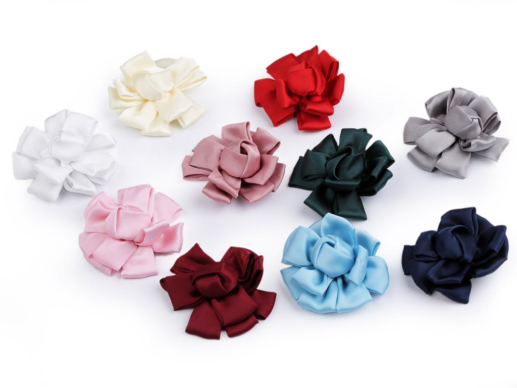 Textilní saténové květy jsou precizně skládané, zpracované v té nejlepší kvalitě. Mají jemný saténový lesk. Ve spodní části mají filcové kolečko, díky kterému je můžete pohodlně kamkoliv upevnit. Můžete je našít či nalepit jako ozdobu na šaty, halenky apod.