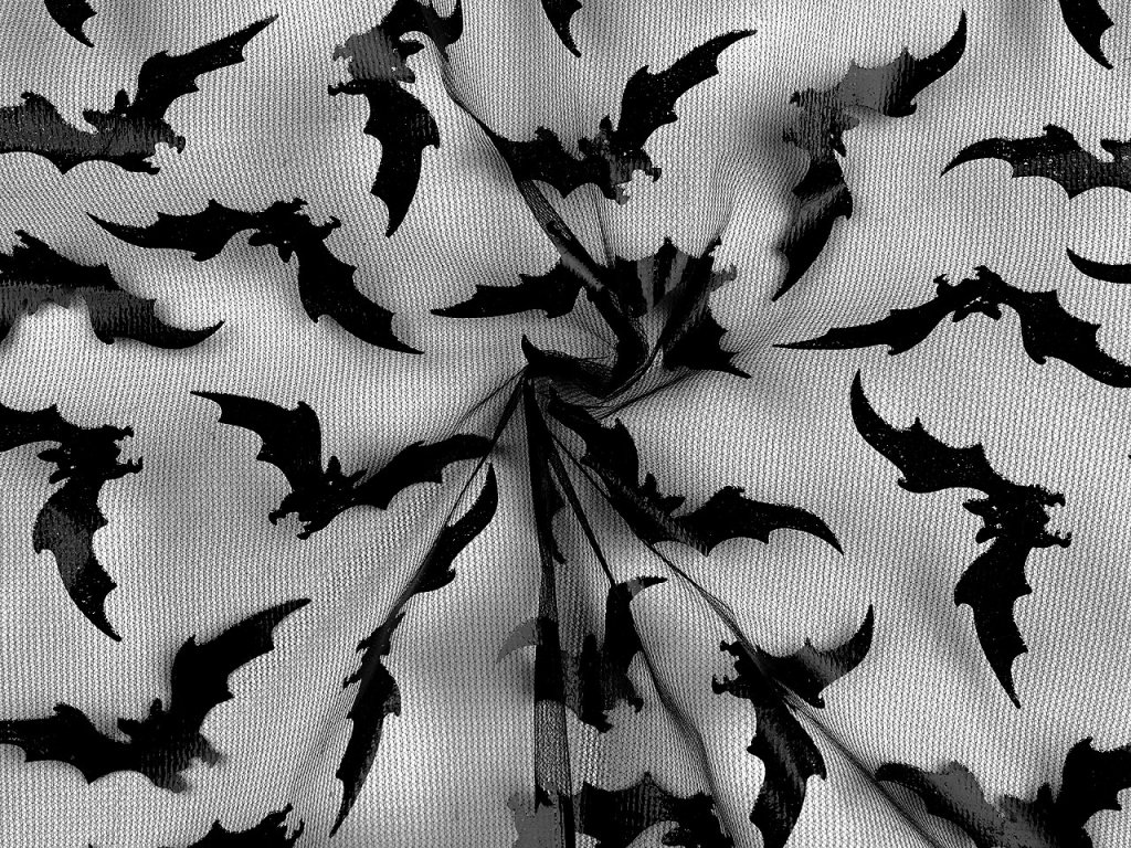 Šifonový úplet se díky potisku s netopýry skvěle hodí na strašidelné halloweenské aranžmá. Můžete s ním nazdobit stůl, židle, věnce a různá interiérová zákoutí.