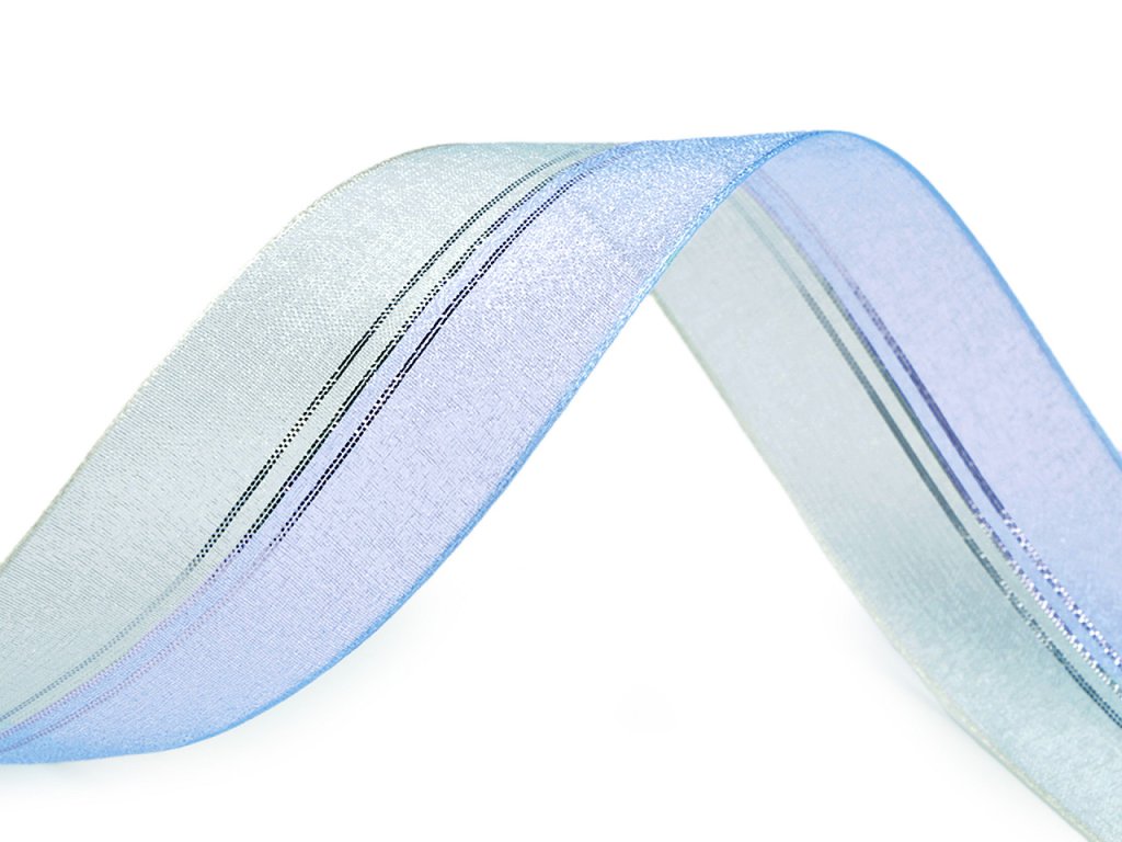 Efektní organzová stuha je průhledná a dvoubarevná. Jejím středem prochází lesklé lurexové vlákno. Stuha dobře drží tvar.