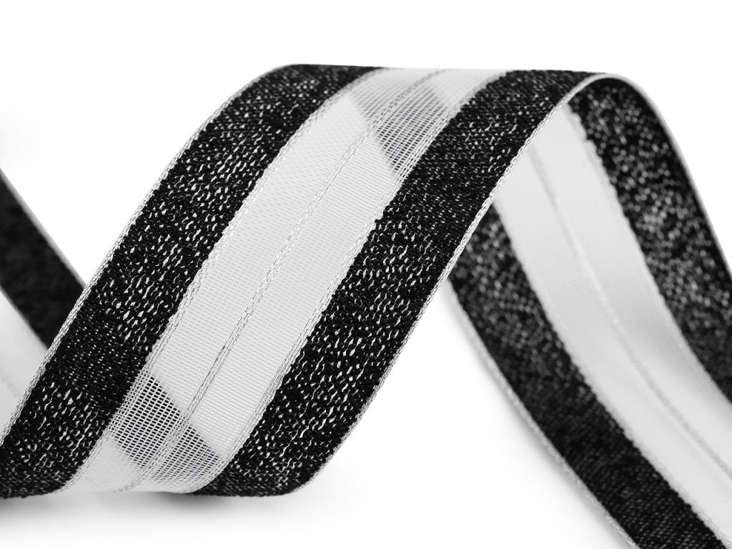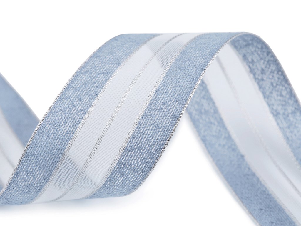 Efektní stuha má transparentní střed, který je spolu s okraji protkán lurexem. Dobře drží tvar.