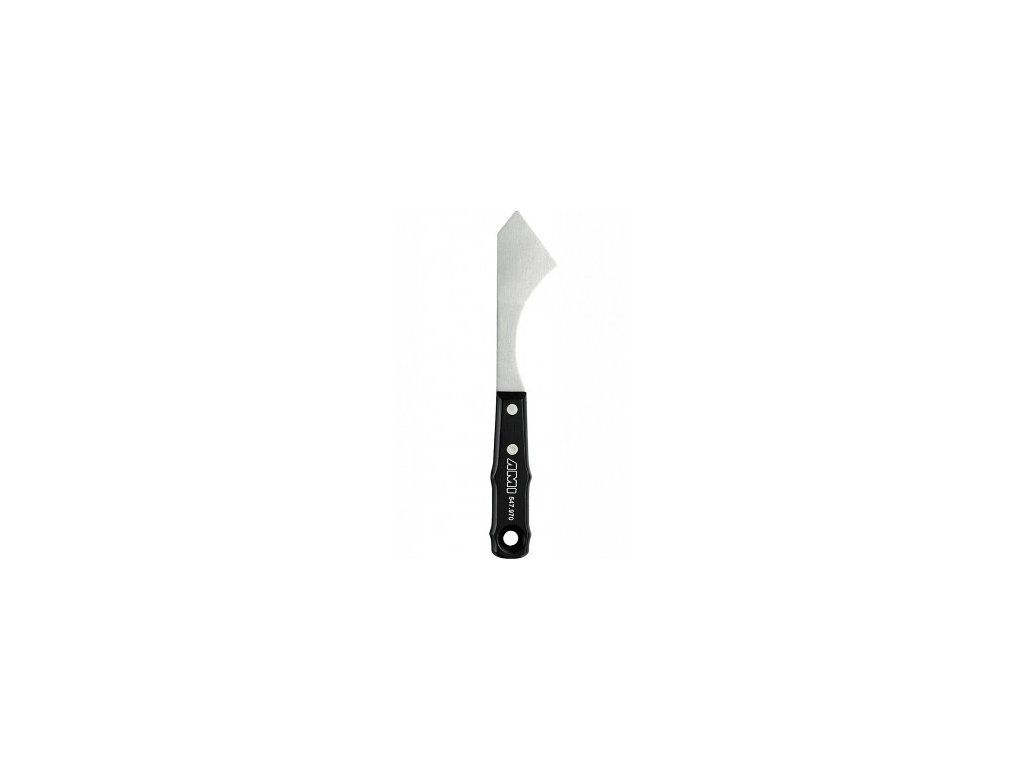 Ocelová špachtle pro malbu, obvykle olejovými či akrylovými barvami. Špachtle je ohebná, avšak poměrně pevná.