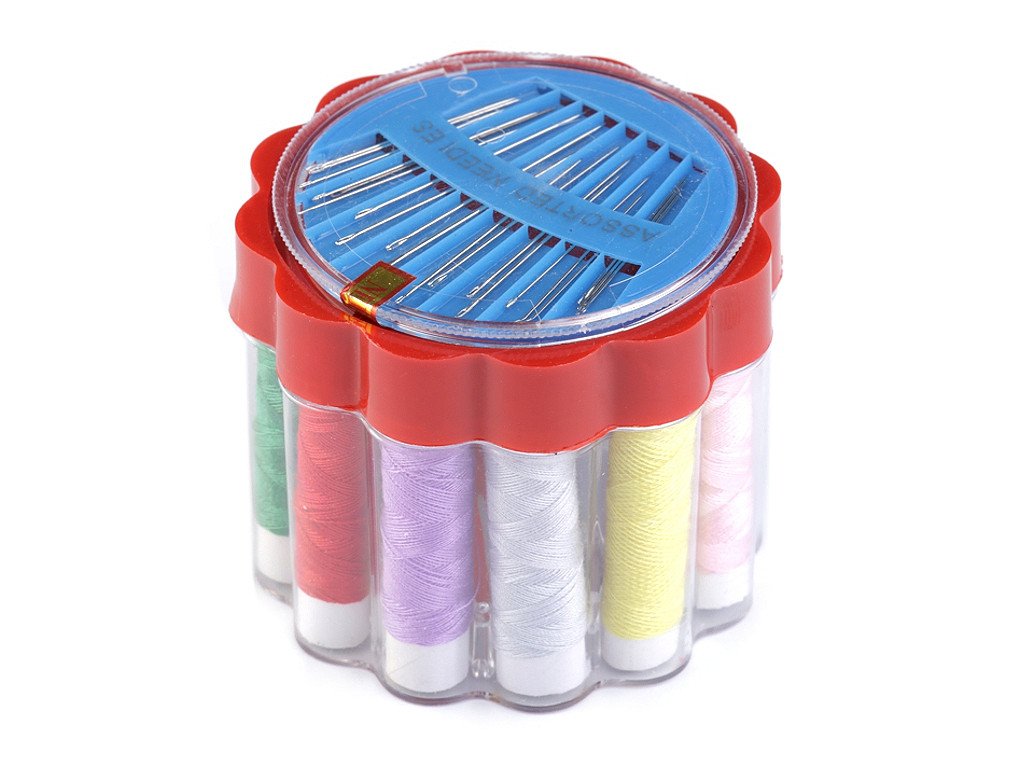 Praktické šitíčko v plastové dóze obsahuje všechny základní věci, které potřebujete k šití nebo opravení vašeho oblečení.