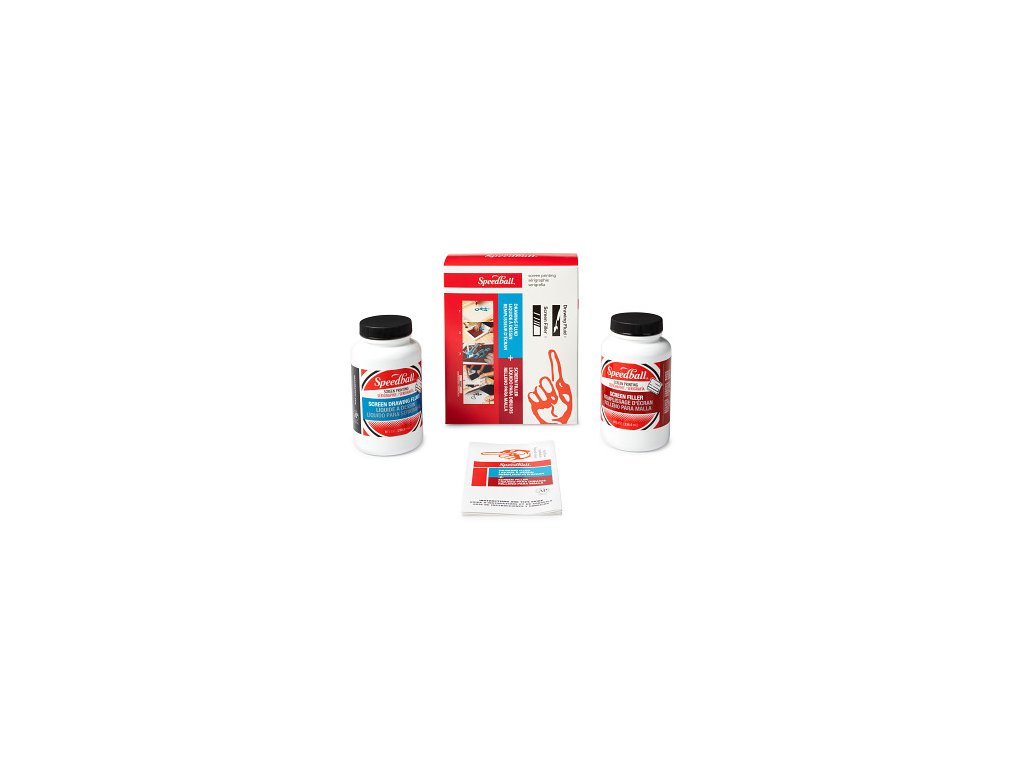 Krycí sada pro sítotisk Speedball Kit je ideální pro vlástní výrobu šablon v sítotisku. Obsahuje dvě klíčová média: Drawing Fluid (kreslicí kapalina) a Screen Filler (výplňová kapalina), které spolu tvoří jednoduchý a efektivní způsob, jak vytvářet vlastní motivy bez použití UV světla. Vhodné pro tisk na textil i papír.