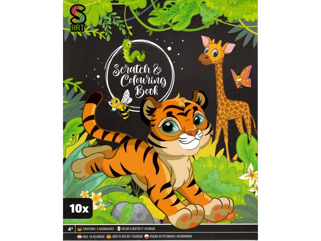 Škrabací + vymalovávací obrázky, 10 listů - tygřík