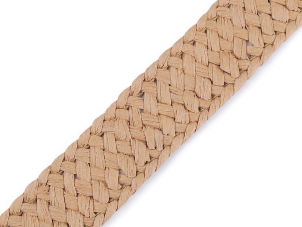 Splétaný popruh svým zpracováním připomíná slámu. Využijete ho k výrobě uch kabelek a tašek. Je vhodný i k olemování letních klobouků.