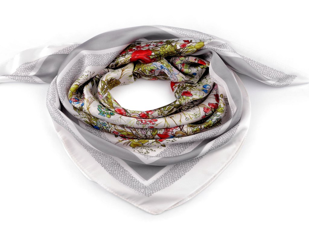 Saténový šátek s potiskem[ lučních květů] je elegantním módním doplňkem. Oživíte s ním jednobarevné sáčko, halenku, šaty i tričko. Příjemný materiál s jemným leskem vás bude doslova hýčkat. Šátek je oboustranný, čtvercový tvar můžete variabilně upravit kolem krku.