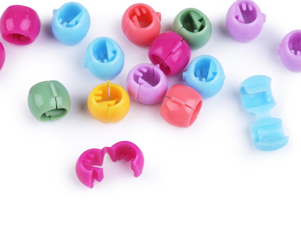 Sada rozevíracích korálků vám pomůže zajímavě ozdobit účes. Oceníte jejich snadnou aplikaci. Korálek stačí rozevřít, nasadit na pramínek vlasů a zacvaknout zpět. Stejně tak jednoduché je i jejich sundání. Díky tomu se vlasy nijak nepoškodí. Korálky mají uvnitř zoubky, ve vlasech dobře drží.